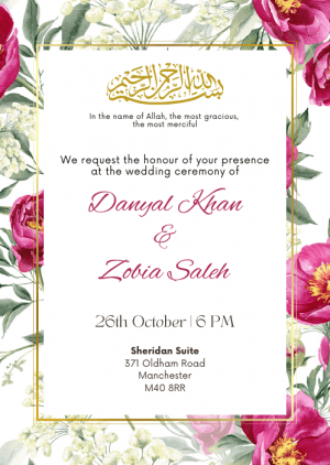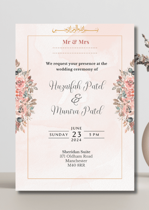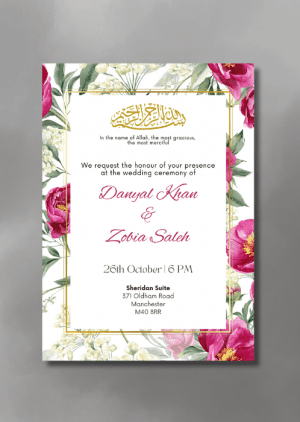 Set the tone for your upcoming wedding with our Blush Cascade Wedding Invitation. The pastel pink backdrop with the floral arrangements cascading down the sides.