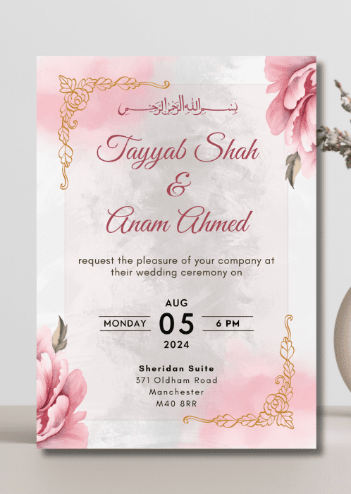 Our Blushing Pink Hues Wedding Invitation is a lovely way to welcome your loved ones on your special day. This invitation features delicate pink hues reminiscent of blushing cheeks and blooming romance.