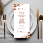 Our elegant Burgundy Floral Menu announces all the dining details in store for your beloved guests. This beautiful design features delicate watercolour florals in a palette of blush, burgundy and gold.