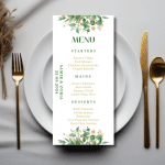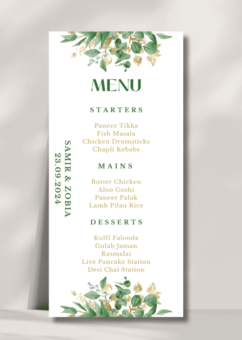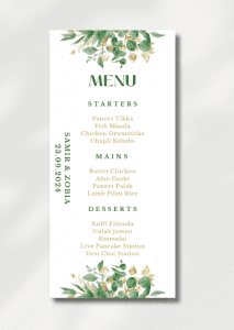 The card delicately displays your names and wedding date before disclosing the delicious details of your starter, main course and dessert options.
