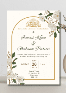 Announce all the official details with our Gardenias Arch Wedding Invitation. The delicate white flowers reminiscent of gardenias and magnolias framing the details within a arch.