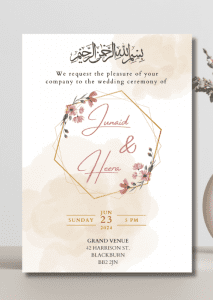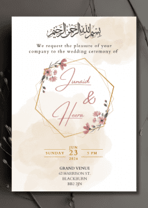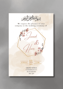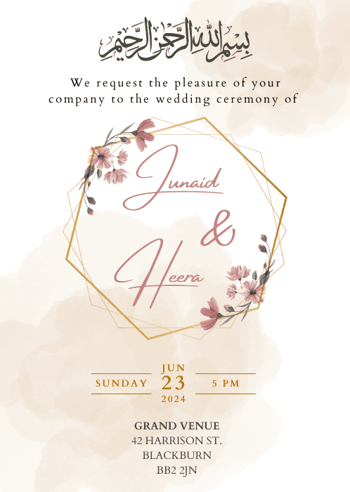 Welcome your guests in style with our Gold x Washed Neutral Wedding Invitation. This invitation includes a soft muted background with delicate flowers entwined with the geometric gold frame.
