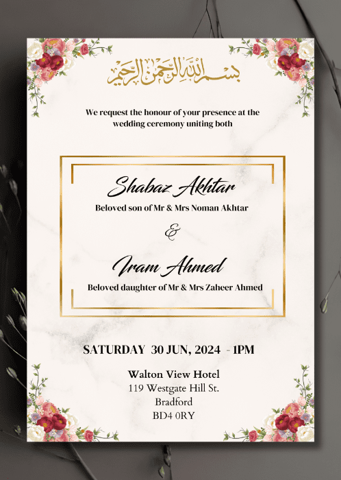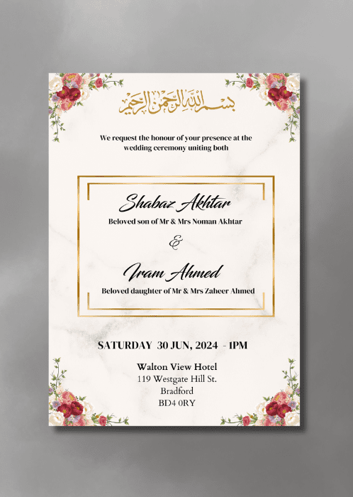 Our Marble Pink Hues Wedding Invitation is a lovely way to welcome your loved ones on your special day. The delicate floral arrangements rendered in soft hues of pink, white and burgundy with the marble background evoking a sense of timeless elegance.