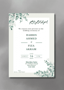 All the essential information is printed on the invite which can be embellished with a wrap-around band, menu card and a additional card for finer details if needed.