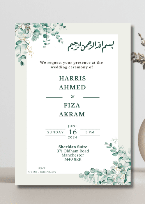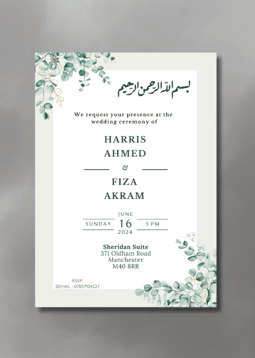 Welcome your guests in style with our Minimal x Eucalyptus Wedding Invitation. The delicate watercolour eucalyptus branches in cool soothing tones of greens, whites and gold accents framing the details.