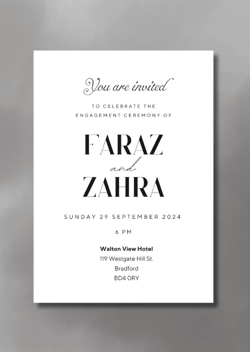 Set the tone for your upcoming event with our Minimal x Monochrome Engagement Invitation. This design features an elegant minimal layout with a monochromatic colour scheme.