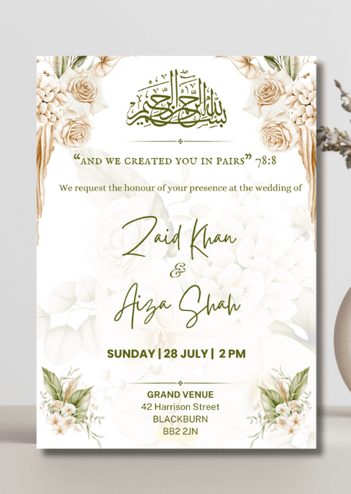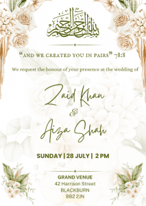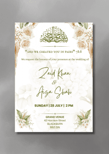 All the essential information is printed on the invite which can be embellished with a wrap-around band, menu card and a additional card for finer details if needed.