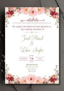Our Pink Floral Trim Wedding Invitation is a lovely way to welcome your loved ones on your special day. This invitation features a dance of pink and white flowers framing the main details.