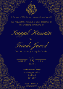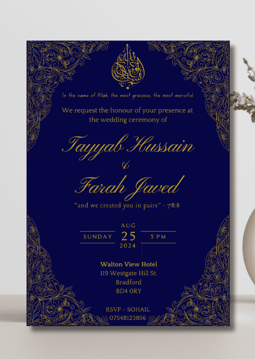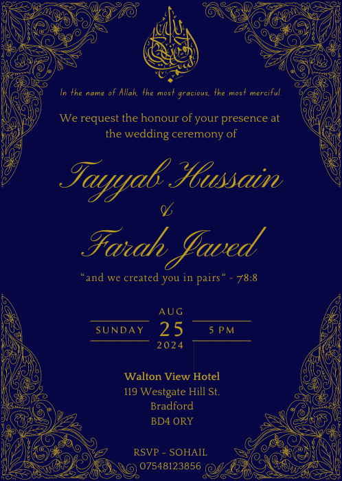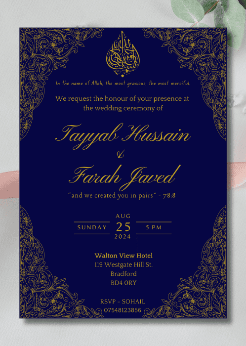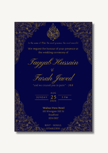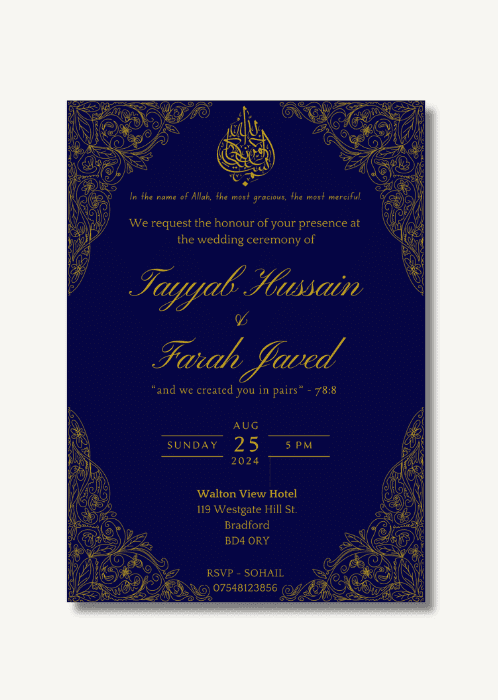Announce all the official details with our Deep Blue x Floral Wedding Invitation. This invitation features intricate floral borders with a deep blue background.