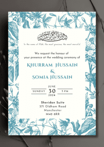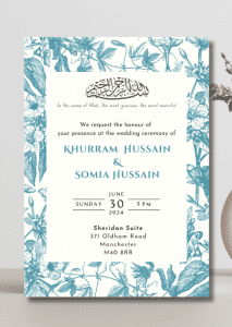All the essential information is printed on the invite which can be embellished with a wrap-around band, menu card and a additional card for finer details if needed.