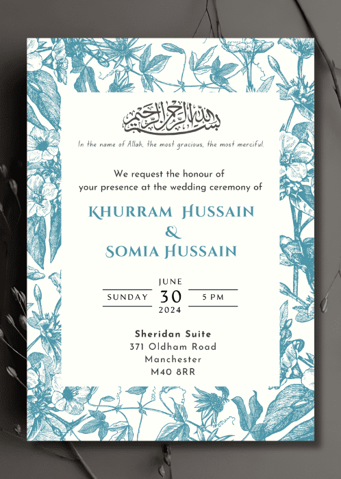 Welcome your guests in style with our Serene Monochrome Wedding Invitation. The choice of monochrome blue infuses the design with a serene and tranquil aura.